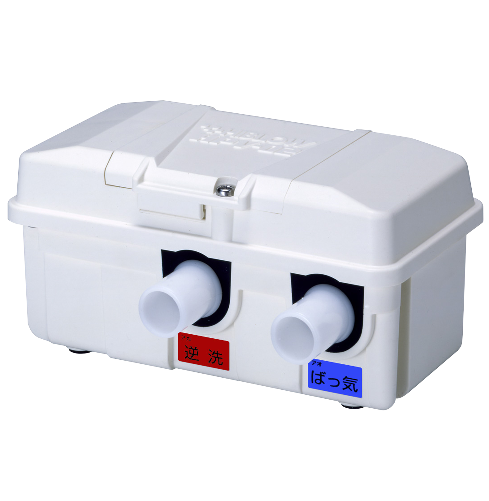 XPシリーズやHPシリーズのように、吐出ノズルが1口のブロワに外付けし、ばっ気と逆洗を切り替えるタイマーユニットです。ばっ気ノズルから吐出している空気を、タイマー設定された一定の時間だけ、逆洗ノズルから吐出します。